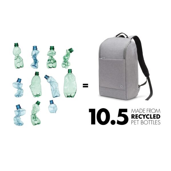 The Eco Backpack SOLID offers ideal protection for 13-15.6 laptops with HDF padding, plus a slip pocket for 12.9″” tablets. Its spacious main section organizes documents and accessories, with internal mesh pockets for bottles/umbrellas. The front pocket has compartments for smaller items like smartphones and chargers. A side zipper offers quick access to the main compartment. Enjoy comfort from ergonomic back padding and adjustable shoulder straps. Made from water-repellent, recycled PET material, this eco-friendly bag protects contents on rainy days, perfect for those on the go.”