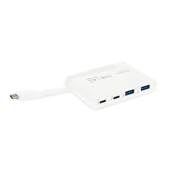 Expand the USB connection of your computer using the integrated USB-C connector. The DICOTA hub is compatible with Mac, Windows and other USB-C supported devices. Thanks to the plug and play specification, you don’t need additional device configuration. The first USB-A -left to right- supports both, Battery Charging (BC1.2) with power up to 7.5W and data transmission. The second USB-A supports data transmission up to 5Gbps and charge for the connected USB device. The first USB-C supports up to 5Gbps data transmission and charge for the connected USB device, and the USB-C PD3.0– the one on the right side –, supports up to 5Gbps as downstream data port or up to 100W Power Delivery charging as upstream charging port. Its compact size makes it ideal for the home office or environments where a clean productive desktop is needed.